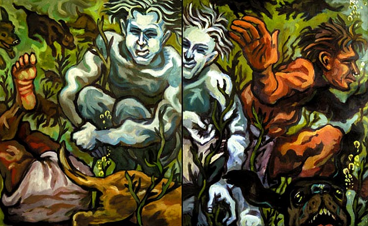 Daniel Vincent Bigelow..."Dream of a School of Dogs" - paint on wood construction