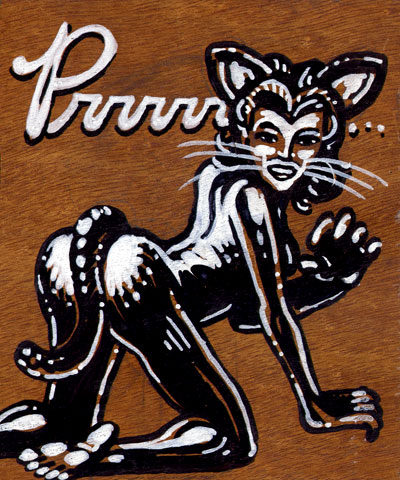 "Prrrrr" - 5" x 6" - ink & acrylic on wood