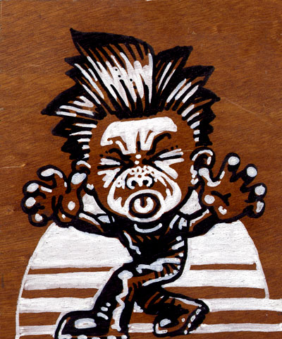 "Nope" - 5" x 6" - ink & acrylic on wood