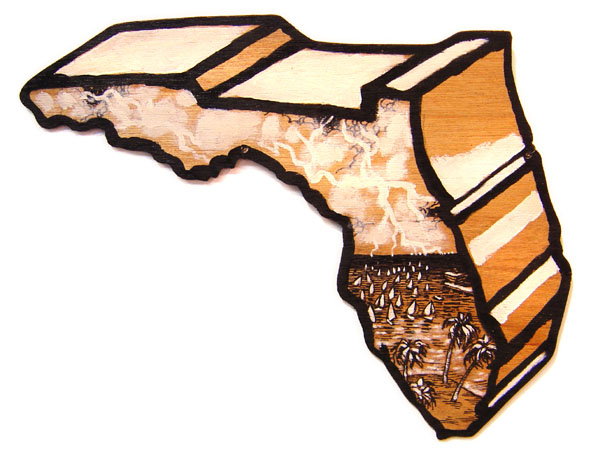 Daniel Vincent Bigelow..."The Storm of My Life Struck in Florida" - paint, ink on wood cutout