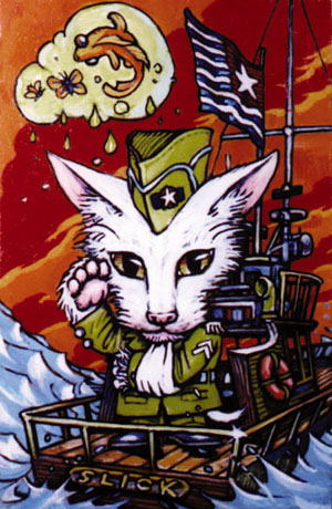 "Longing of a Feline Corporal" - 7.5" x 12" - ink & acrylic on panel