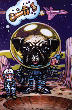 "Space Pug's Longing" - 7.5" x 12" - ink & acrylic on panel