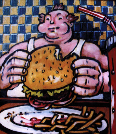 "Our Burgers are Better" - 5" x 6" - ink & acrylic on wood