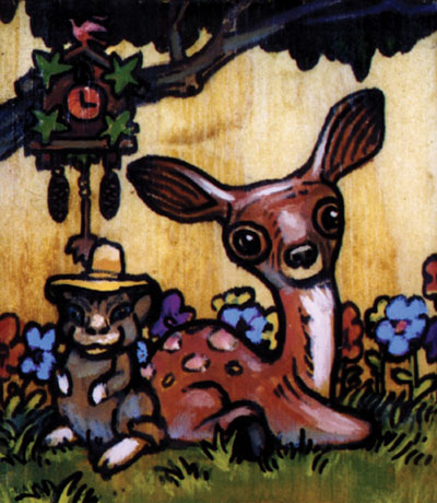 "Time for our Deer Squirrel" - 5" x 6" - ink & acrylic on wood