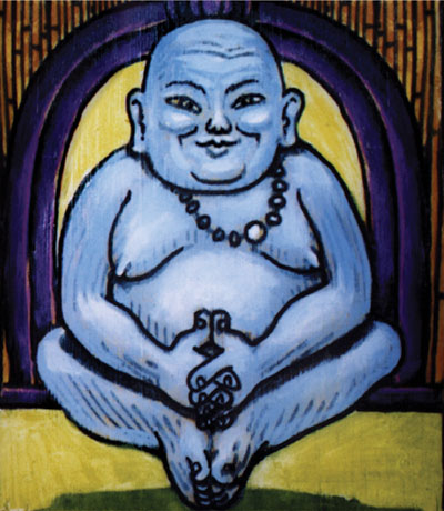 "Lavender Buddha" - 5" x 6" - ink & acrylic on wood