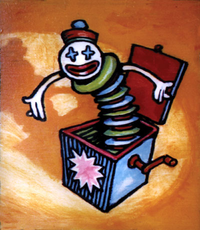 "Quack in the Box" - 5" x 6" - ink & acrylic on wood