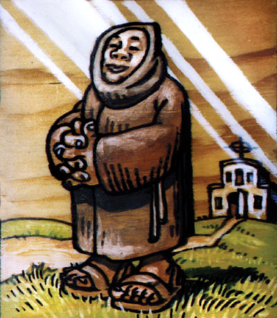 "Monk in the Sun" - 5" x 6" - ink & acrylic on wood