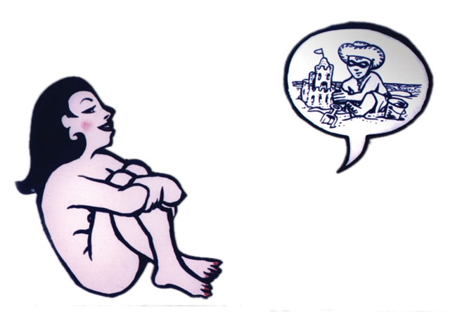 "Fetal Nude", "Speaking of Sandcastles" - 24" x 28", 18" x 20" - latex on wood cutout