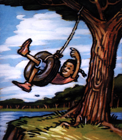 "Tire Swing" - 5" x 6" - ink & acrylic on wood