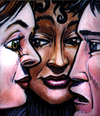 "Méage a Trois" - 5" x 6" - ink & acrylic on wood