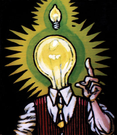 "Lighthead's Idea" - 5" x 6" - ink & acrylic on wood