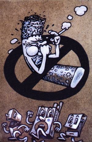 "No Smoking" - 7.5" x 12" - ink & acrylic on panel