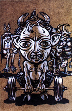 "Exercising Demons" - 7.5" x 12" - ink & acrylic on panel