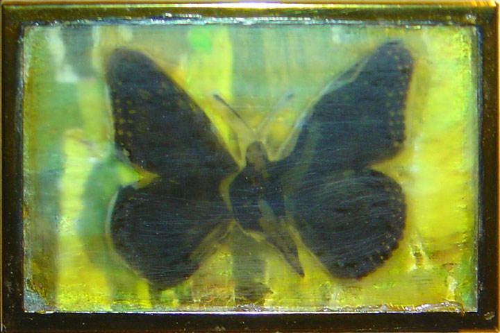 "Fairy in the Park" - transparency, shellac in keepsake frame - (rollover for detail)....................Mary J. Bigelow