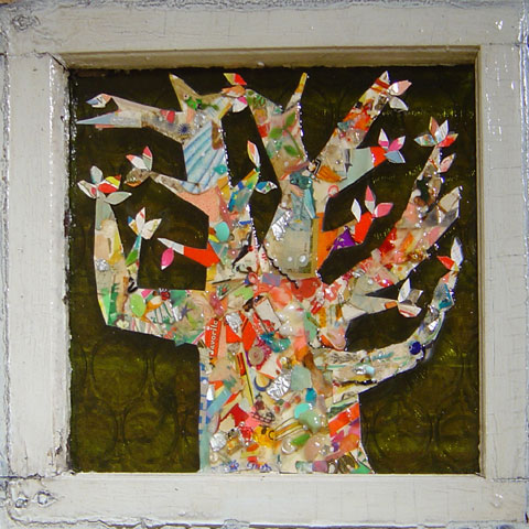 "Window Tree" - assemblage on window - (rollover for detail)....................Mary J. Bigelow