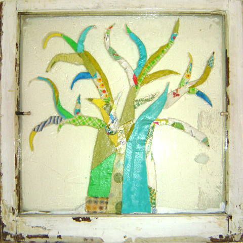 "Window Tree" - fabric on glass (brick wall not included) - (rollover for detail)....................Mary J. Bigelow