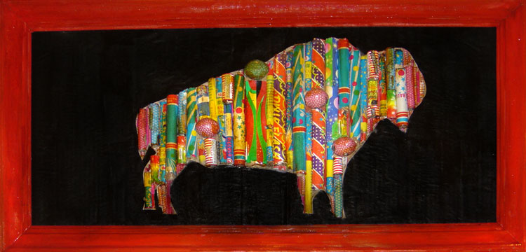 "Firecracker Buffalo" - spent munitions in wood frame - (rollover for detail)....................Mary J. Bigelow