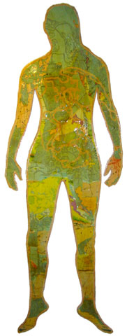 "Pangea" - map treatment on wood cutout - 64" x 24" - (rollover for detail)....................Mary J. Bigelow
