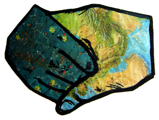 "Earth & Sky" - collage on wood cutout - 9" x 16" - (rollover for detail)....................Mary J. Bigelow