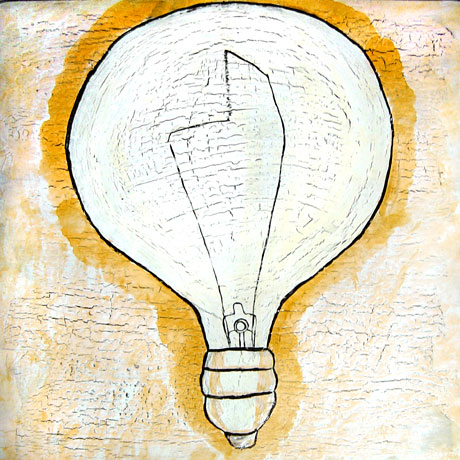 "Big Idea " - plaster, glue, shellac, paint on wood - 24" x 24" - (rollover for detail)....................Mary J. Bigelow