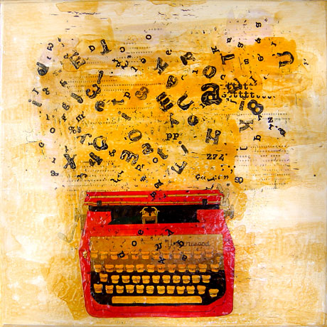 "Write a New Sentence" - mixed media on wood - 24" x 24" - (rollover for detail)....................Mary J. Bigelow...