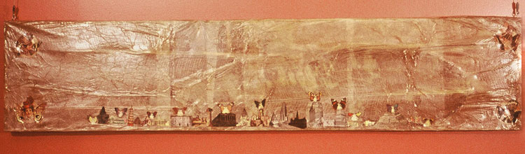 "Atlantis" - collage, banana leaf on wood - 18" x 80" - (rollover for detail)....................Mary J. Bigelow