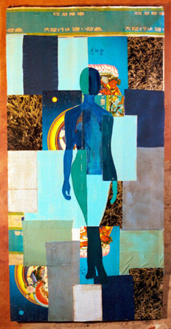 "Night Sky" - collage, paint on wood - 48" x 96" - (rollover for detail)....................Mary J. Bigelow
