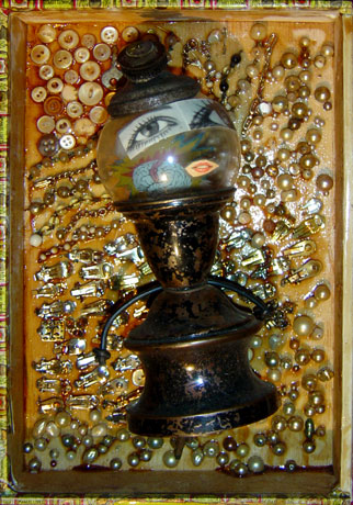 "Brainy Bulb" - junk puppet in cigarbox - (rollover for detail)....................Mary J. Bigelow