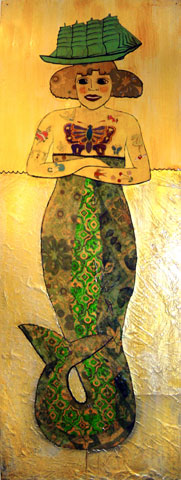 "The Biggest Mermaid" - paint, collage on wood - (rollover for detail)....................Mary J. Bigelow